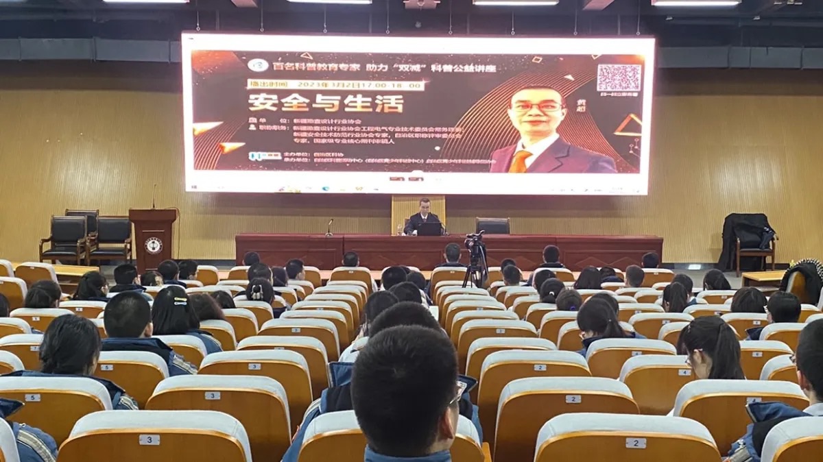 烏魯木齊市第一中學(xué)數(shù)學(xué)教師、新疆青少年科普教育專家候智睿講座主題為“生活中的數(shù)學(xué)”,通過把數(shù)學(xué)知識融入到學(xué)生非常熟悉的生活中,引導(dǎo)學(xué)生以數(shù)學(xué)眼光觀察生活,啟發(fā)學(xué)生跨學(xué)科、多角度提出問題、解決問題,感悟數(shù)學(xué)與現(xiàn)實生活中的聯(lián)系,以便更好地激發(fā)起學(xué)生愛數(shù)學(xué)、學(xué)數(shù)學(xué)的興趣;新疆安全技術(shù)防范行業(yè)協(xié)會專家、新疆勘察設(shè)計行業(yè)協(xié)會工程電氣專業(yè)技術(shù)委員會常務(wù)理事、新疆青少年科普教育專家黃超講座主題為“安全與生活” ,通過對安全政策、安全環(huán)境、安全形勢經(jīng)典案例的分析,更加全面地解讀安全與生活的關(guān)系,從而啟發(fā)學(xué)生在生活中多角度思考個體對安全的作用,創(chuàng)造美好生活環(huán)境。