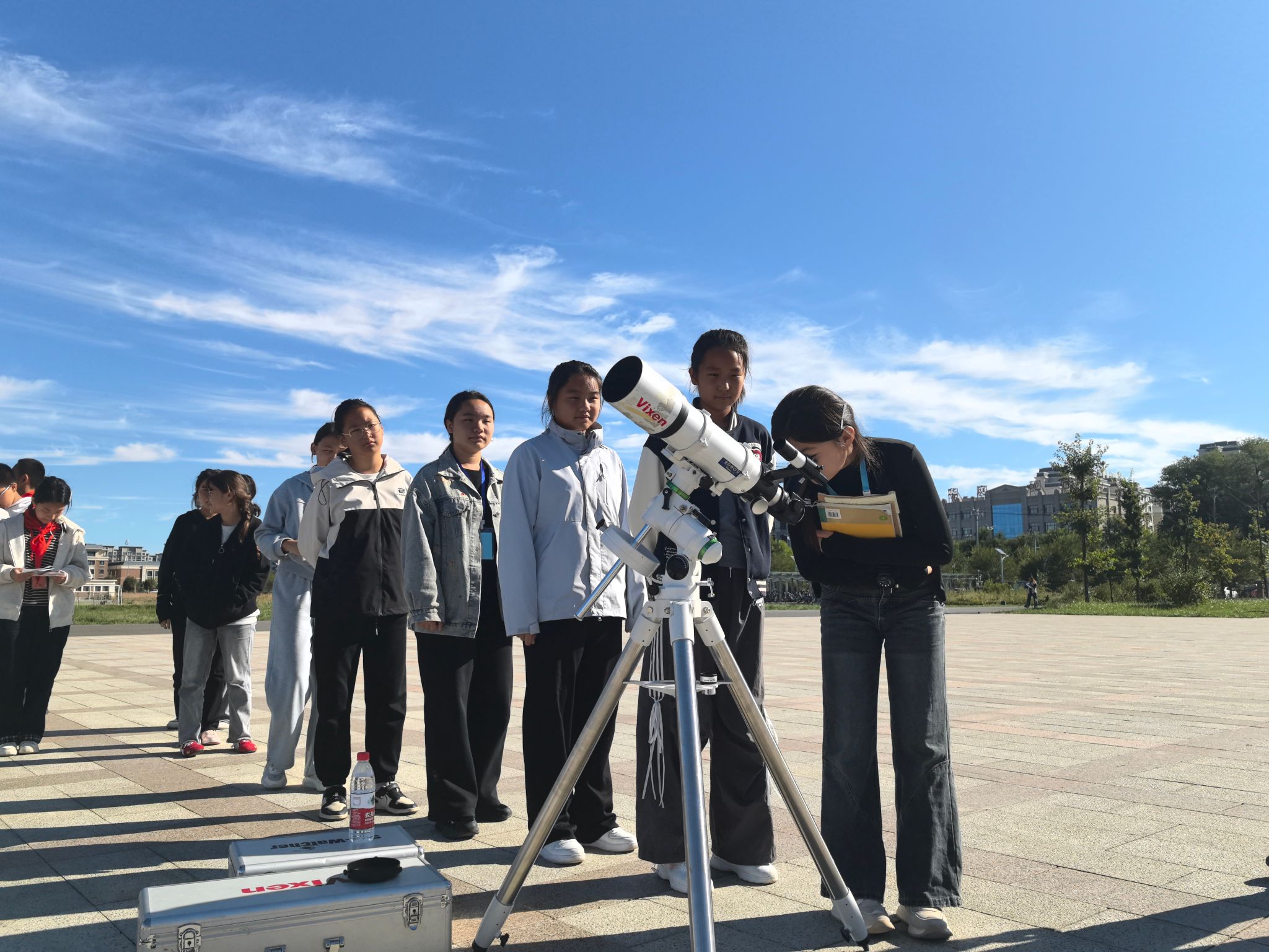 實操體驗環(huán)節(jié)更是讓活動氛圍達到高潮。專家們帶來的專業(yè)觀測設備深受同學們的喜愛。在塔城市第四小學的操場上,科技工作者手把手指導學生操作天文望遠鏡,調(diào)整焦距、對準天體,當孩子們通過鏡頭清晰看到太陽黑子的輪廓、月球表面的環(huán)形山時,興奮地互相分享觀測發(fā)現(xiàn)。“原來月亮上的‘坑’這么大!”“太陽上真的有黑色的斑點!”稚嫩的驚嘆聲中,科學的種子悄然種下。
