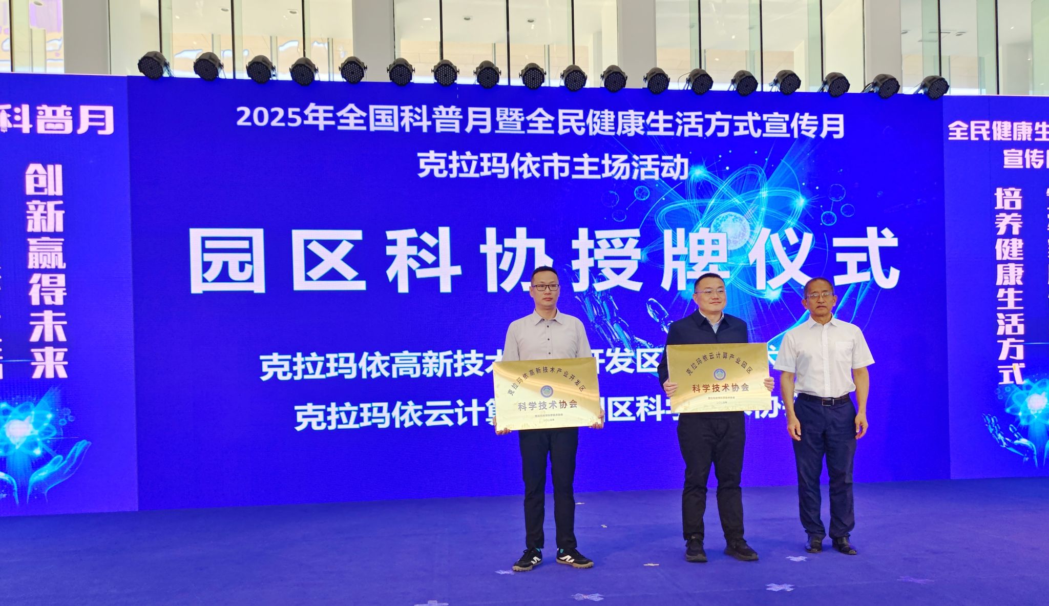 2025年全國科普月克拉瑪依市主場活動上,克拉瑪依市政協黨組成員、副主席、市科協主席李旭升為新成立的克拉瑪依高新技術產業開發區、克拉瑪依云計算產業園區兩家園區科協授牌。這標志著克拉瑪依市首次實現了園區科協組織全覆蓋。