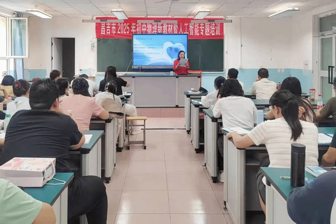 本次活動由昌吉市教育工作服務中心、昌吉市科協主辦,昌吉州陳泓妤庭州名師工作室、昌吉市第四中學協辦,面向全市50余名初中物理骨干教師,開展了一場聚焦新教材解讀與AI技術應用的專題研修,為推動構建智慧課堂、提升教師科技素養注入新動力。