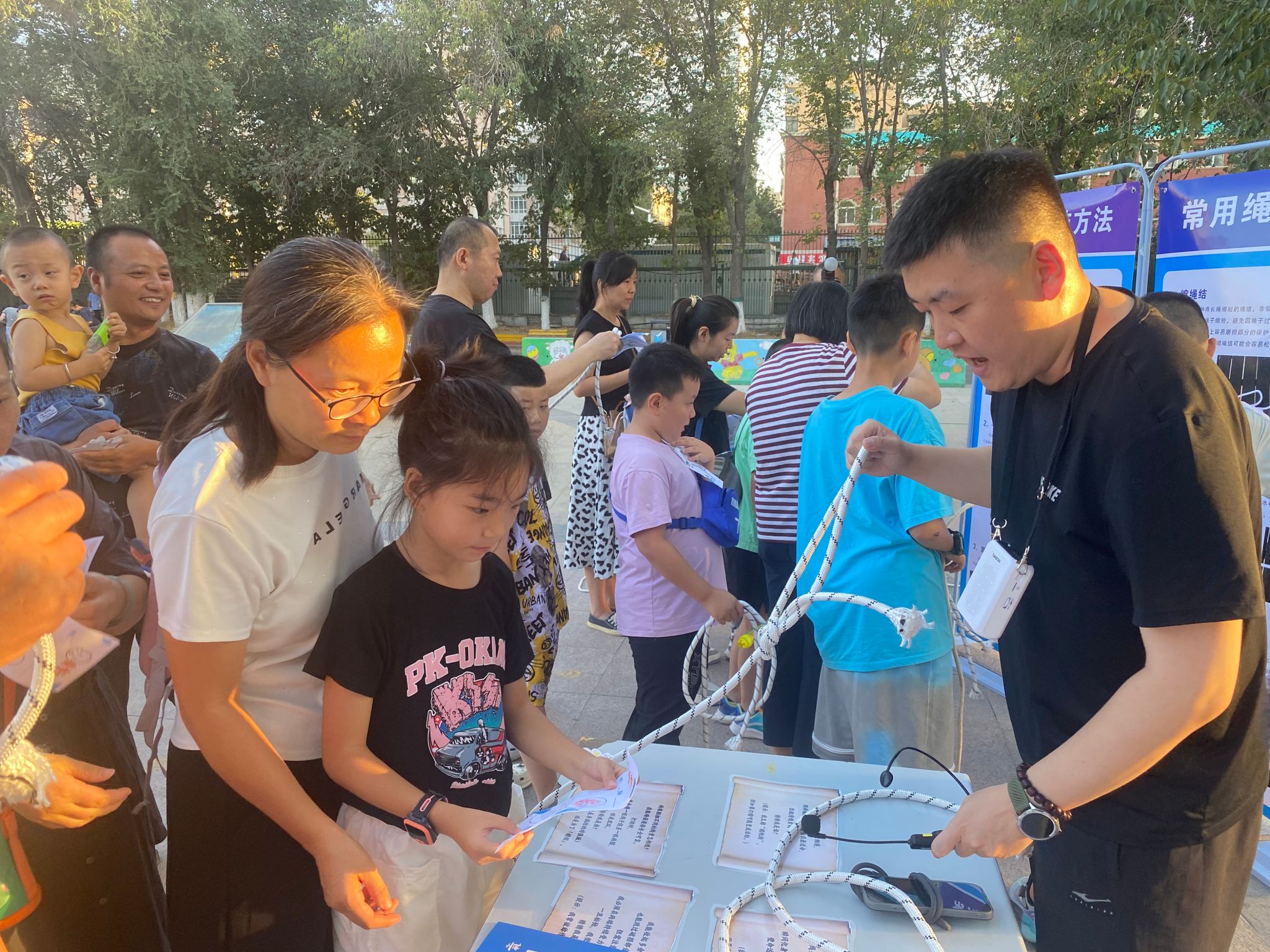 戶外技能區則是戶外愛好者的“聚集地”,孩子們學習繩結知識,完成“漁人結”“八字結”等實用繩法,通過動手實踐,不僅掌握了戶外生存技能,更體會到科學與生活的緊密聯系。