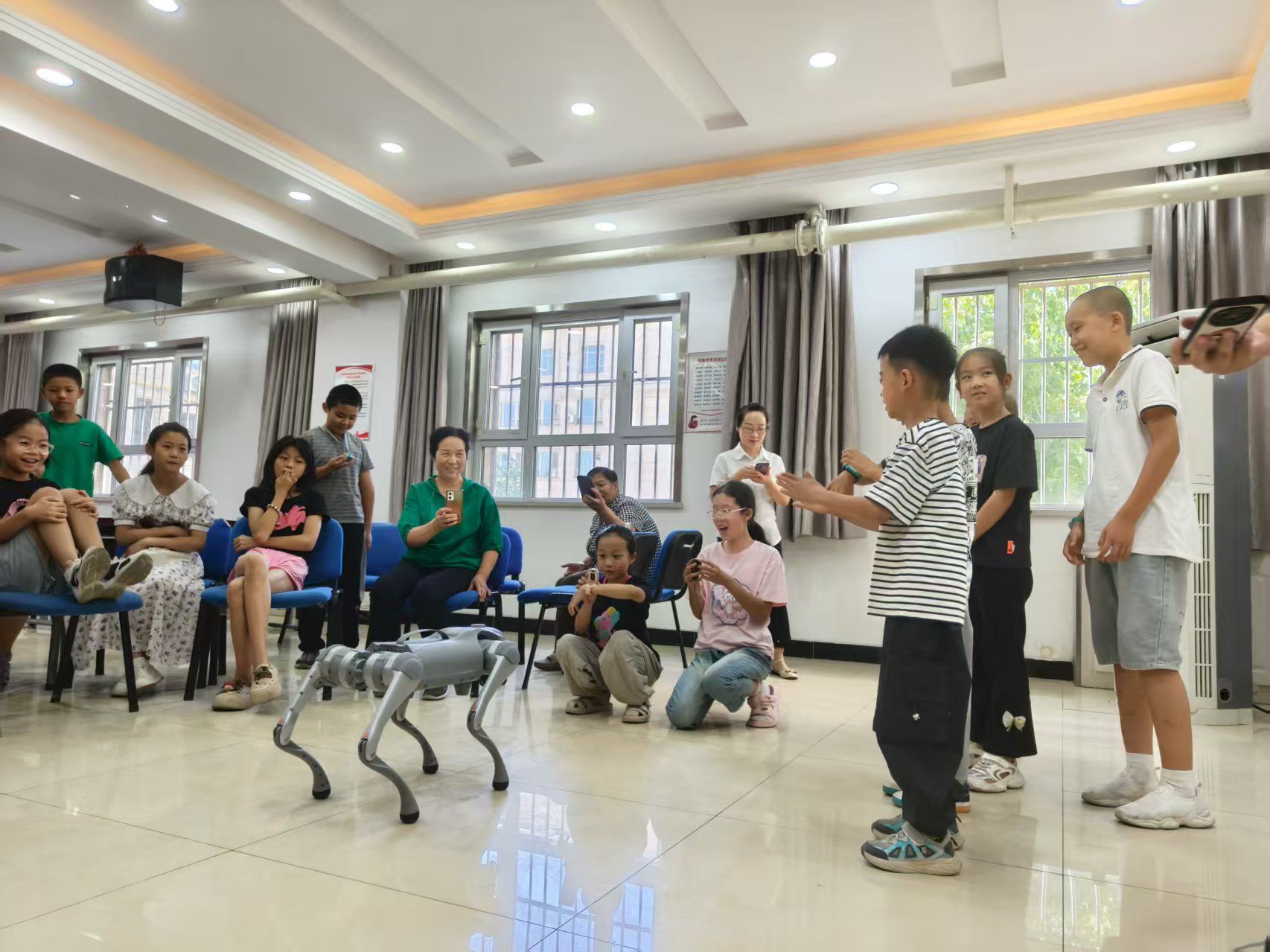 活動現場其樂融融,充滿了歡聲笑語。9歲小朋友皮晨茜說:“今天來科技園社區參觀體驗好有趣,太好玩了,上次夏令營的時候還沒有這么多科普產品,這次我學到了很多知識。”“我還操控了機器狗!它會翻跟頭、站立!它還跟我握了手!”9歲趙孟亦小朋友激動地說。